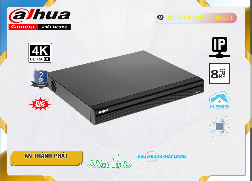 DHI-NVR4104HS-4KS2-L là một thiết bị ghi hình NVR (Network Video Recorder) của hãng Dahua Technology, một trong những công ty hàng đầu về giải pháp an ninh và giám sát video. Dưới đây là các thông số kỹ thuật chi tiết của DHI-NVR4104HS-4KS2-L :
