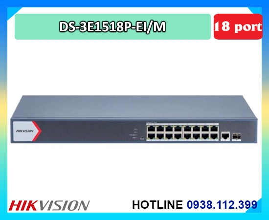 👸 Switch DS-3E1518P-EI/M hỗ trợ 16 cổng PoE, 1 cổng RJ45 và 1 cổng LAN, phù hợp cho những hệ thống lớn cần độ ổn định và hiệu suất hoạt động tốt.